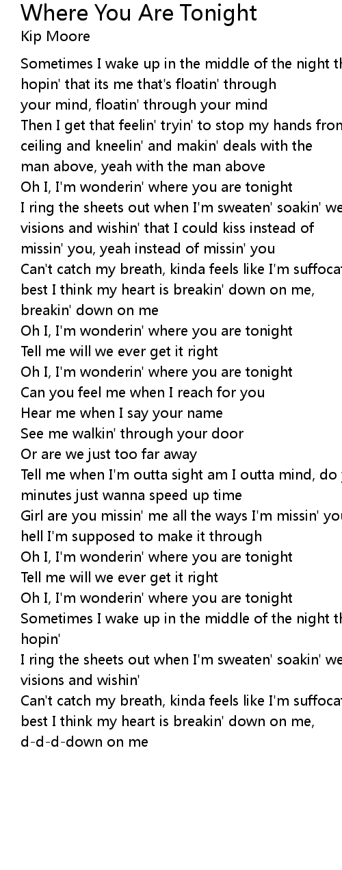 Can't catch my breath, kinda feels like I'm suffocatin' my mind's a wreck, at best I think my heart is breakin' down on me, |