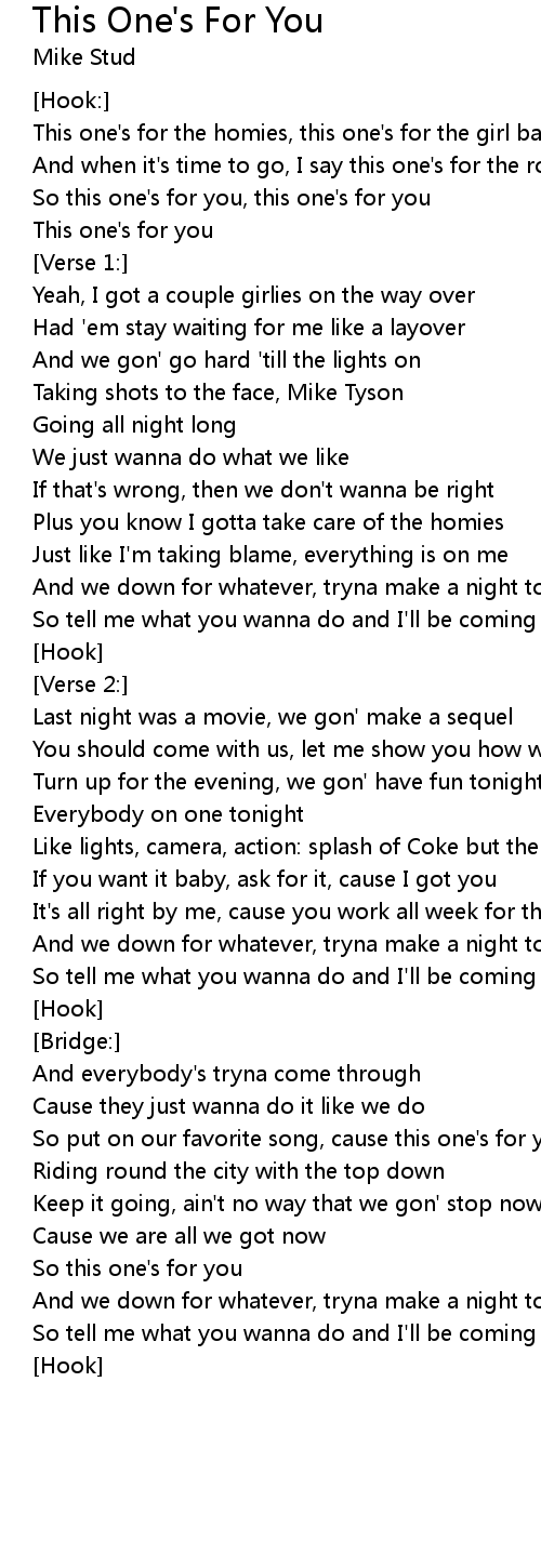 So this one's for you, this one's for you |