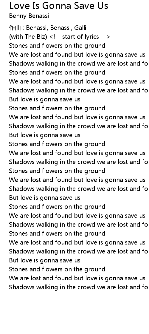 | But love is gonna save us | |