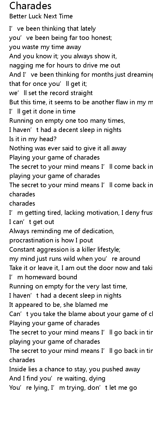 | Can' t you take the blame about your game of charades? | |