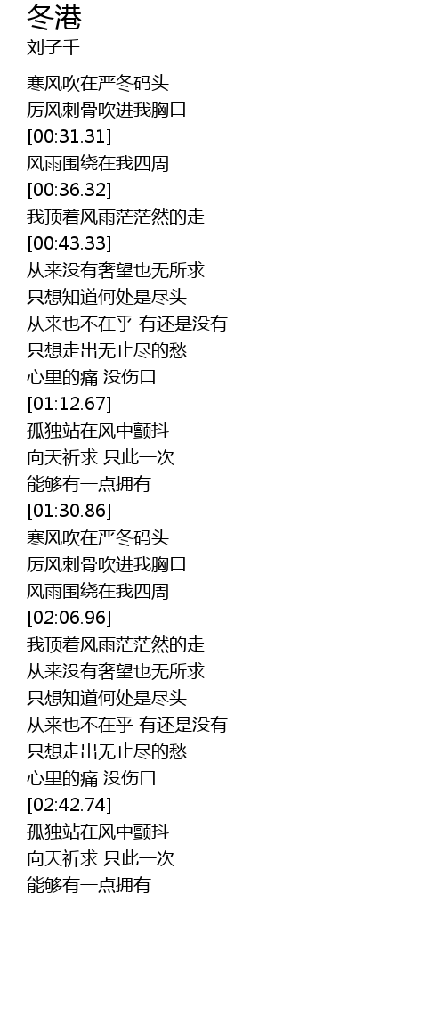 | [00:20.13] | 寒风吹在严冬码头 |