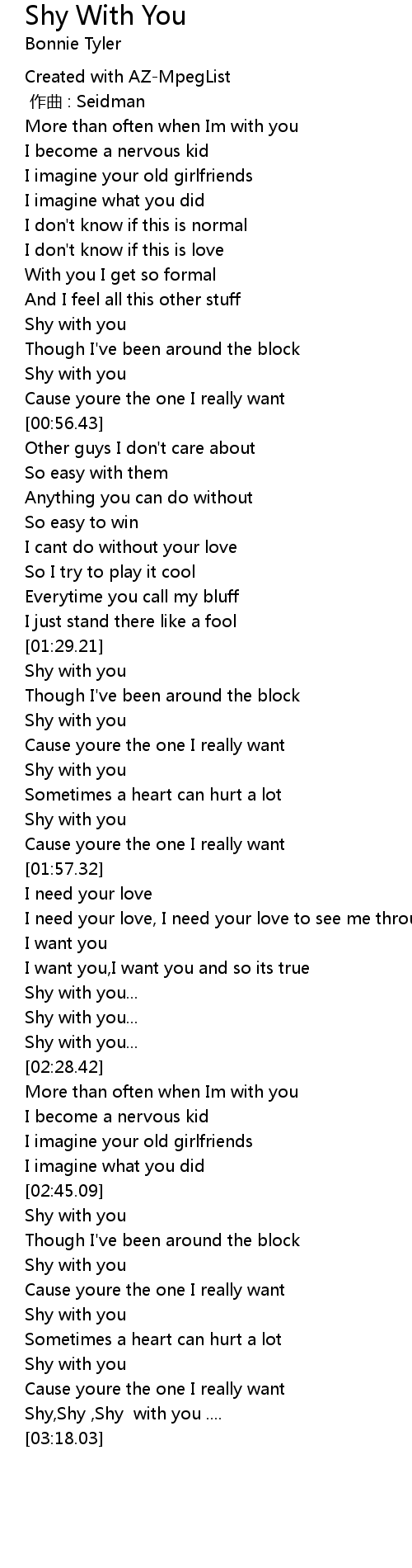 | [02:53.65] | Shy with you |