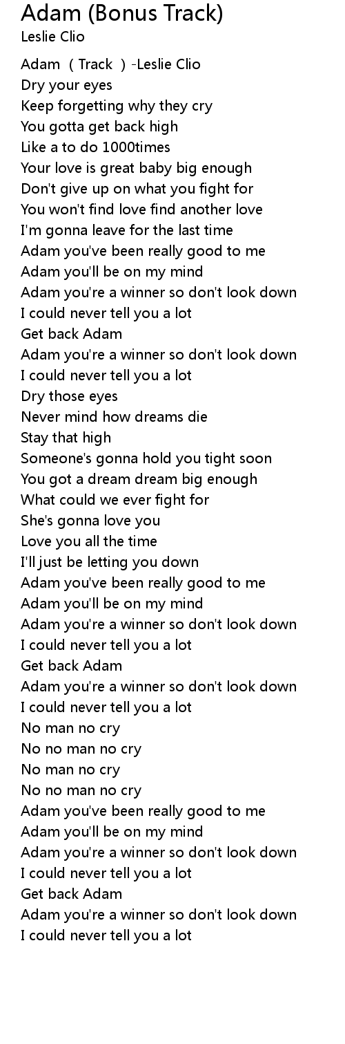| [02:53.53] | Adam you' re a winner so don' t look down |