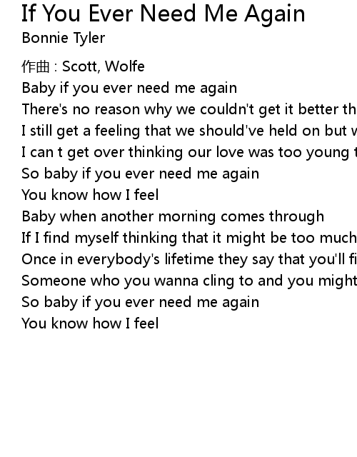 | So baby if you ever need me again | |