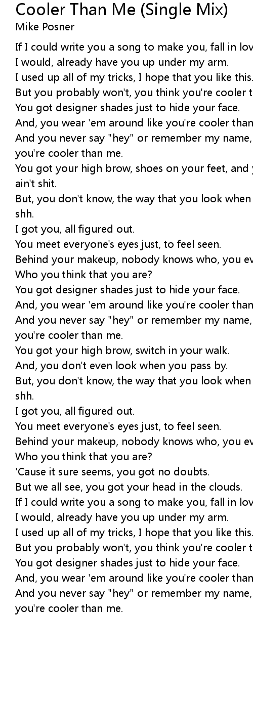 And you never say "hey" or remember my name, and it's probably 'cause you think you're cooler than me. |