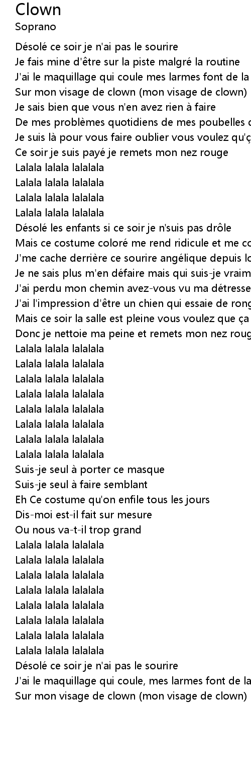 | [00:18.11] | Sur mon visage de clown (mon visage de clown) |