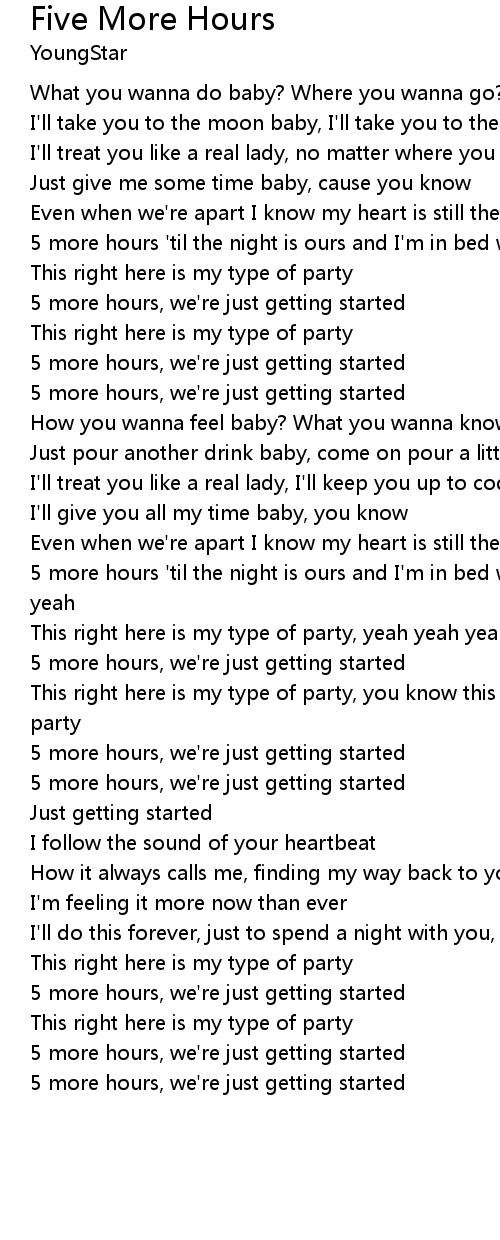 [01:52.860] 5 more hours 'til the night is ours and I'm in bed with you, this is yeah