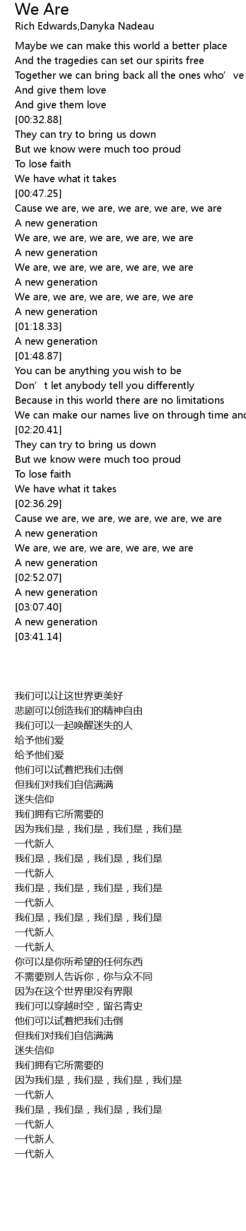 | [00:48.01] | Cause we are, we are, we are, we are, we are |