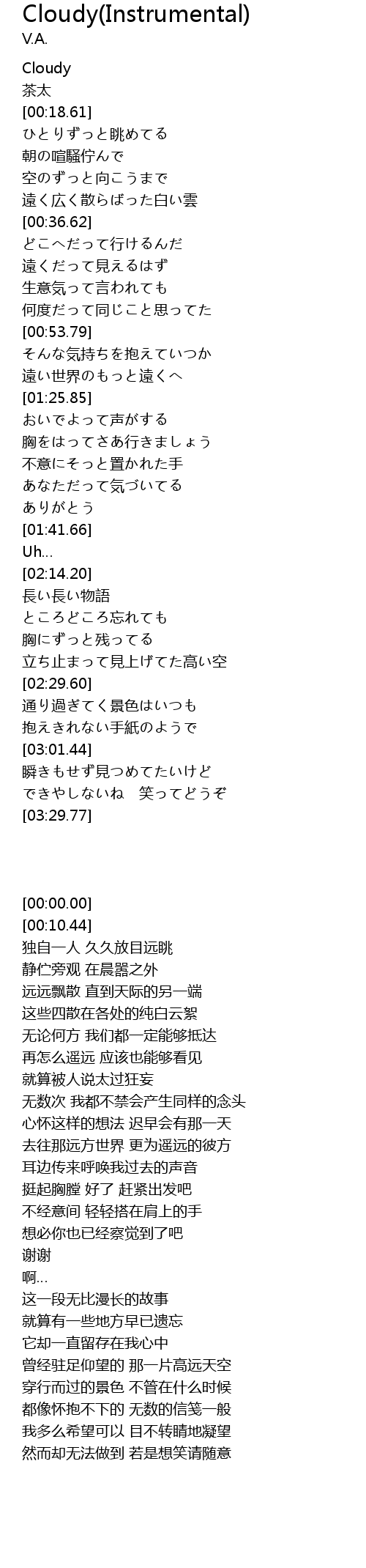 | [00:31.44] | 遠く広く散らばった白い雲 |