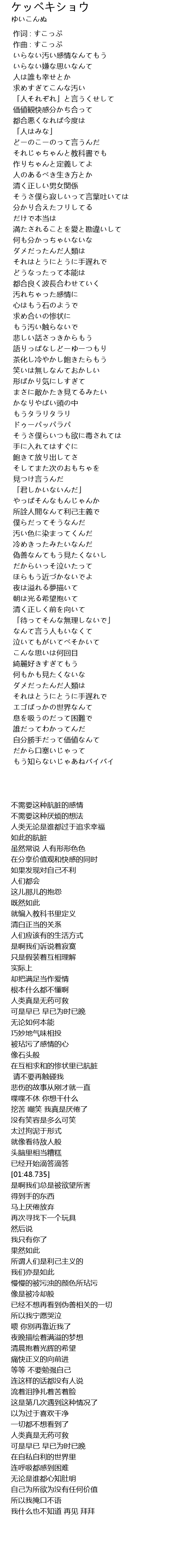 | Song | ケッペキショウ |