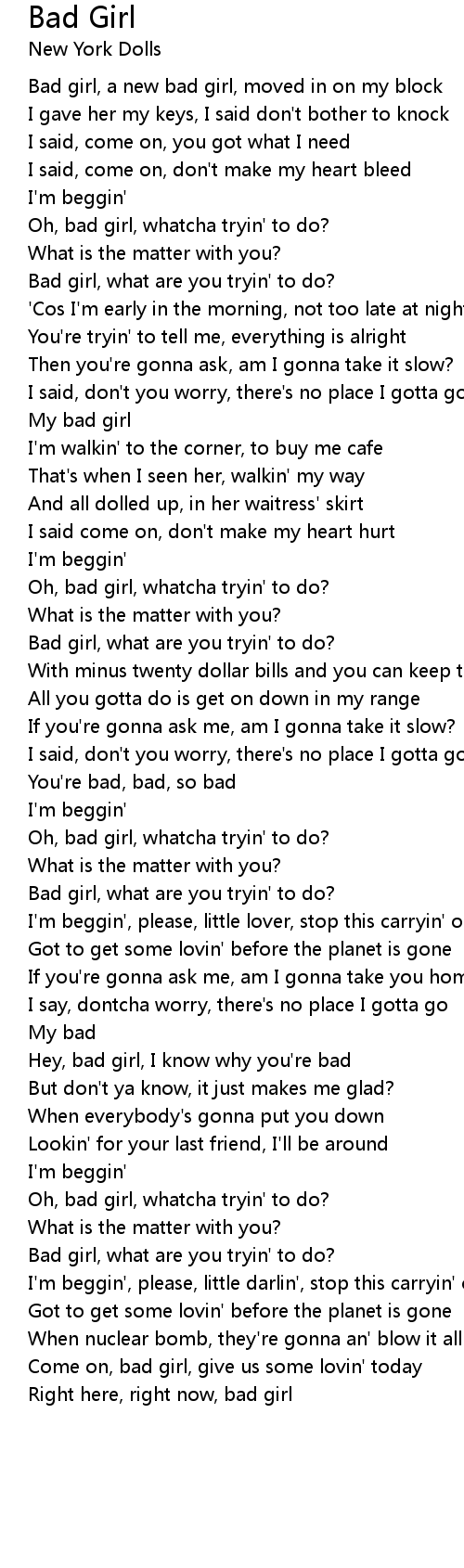 Hey, bad girl, I know why you're bad |