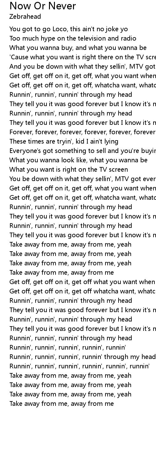 They tell you it was good forever but I know it's now or never |