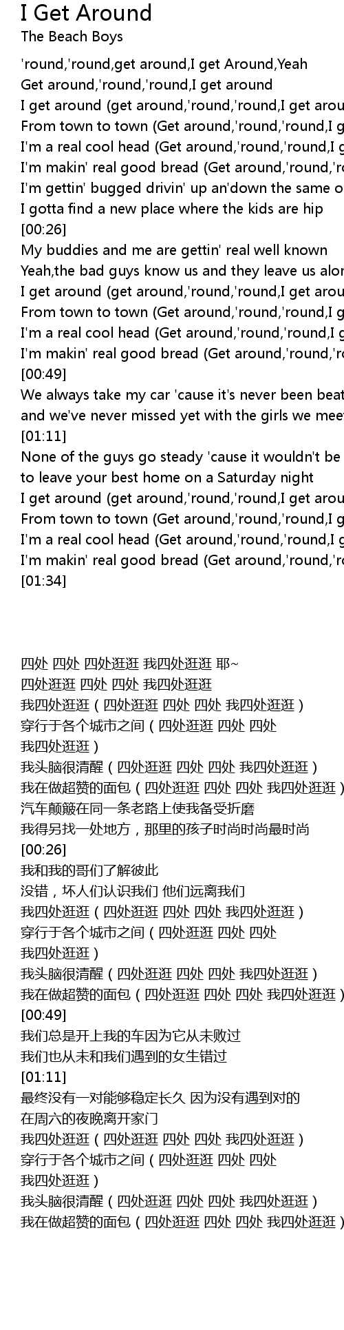 'round,'round,get around,I get Around,Yeah |