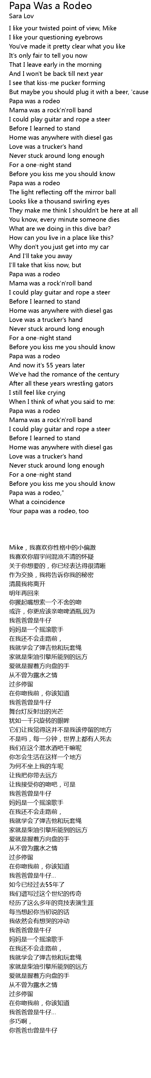 Your papa was a rodeo, too |