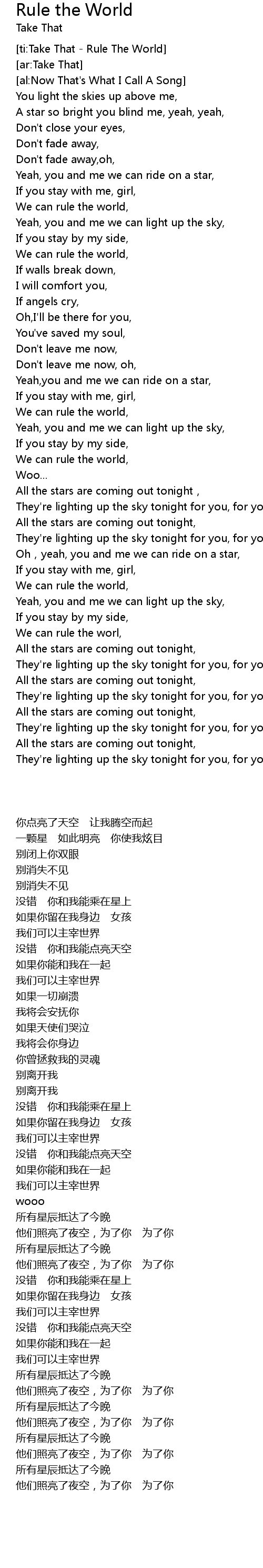 | [ti:Take That - Rule The World] | |