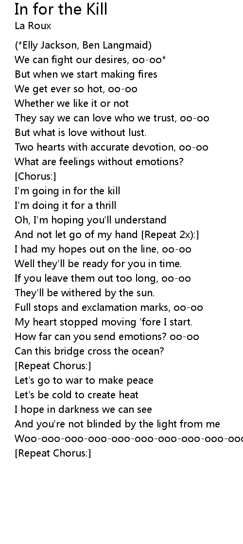In for the Kill Lyrics