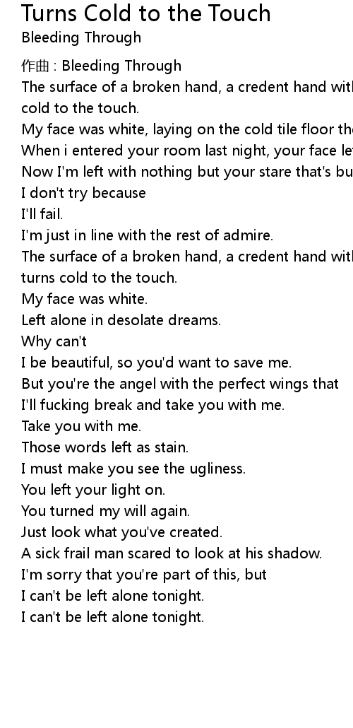 | Song | Turns Cold to the Touch |