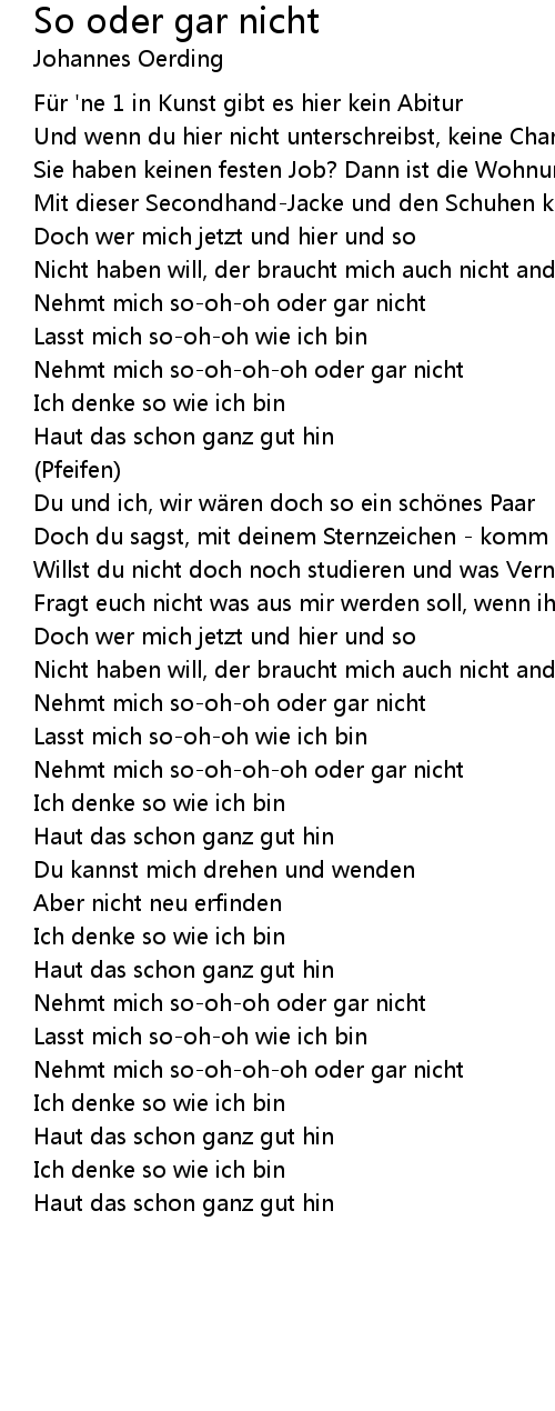 | Nehmt mich so-oh-oh oder gar nicht | |