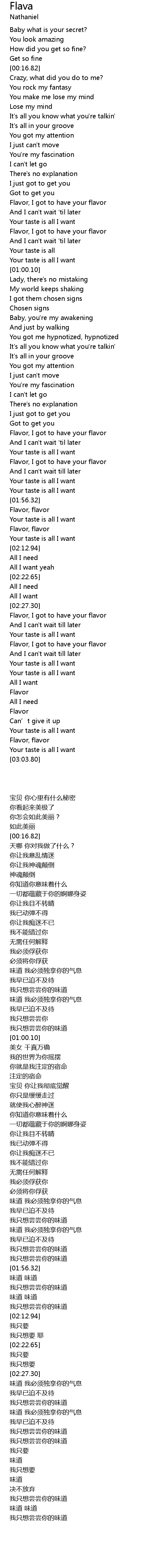 | [01:37.54] | Flavor, I got to have your flavor |