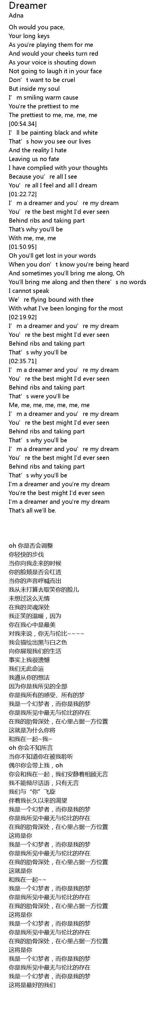 | [03:20.43] | I’m a dreamer and you’re my dream |