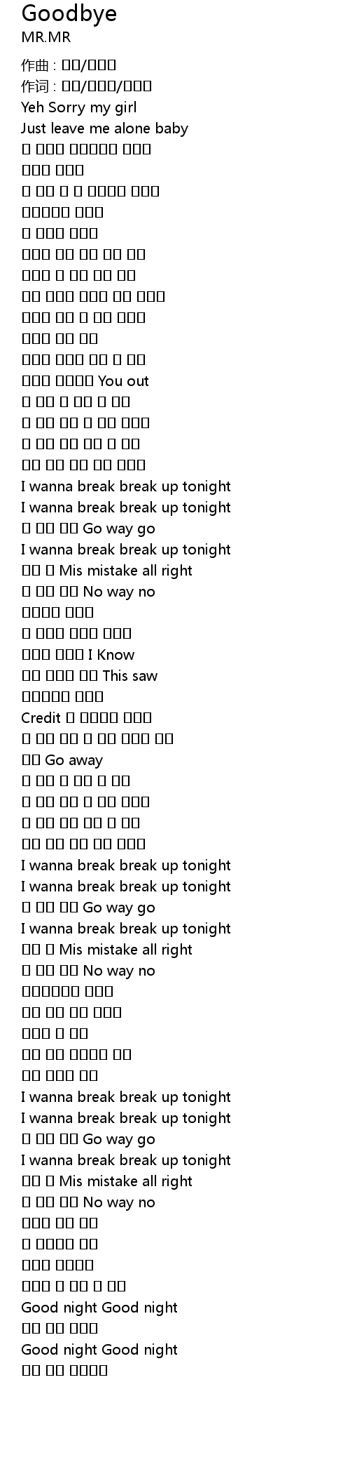 I wanna break break up tonight |