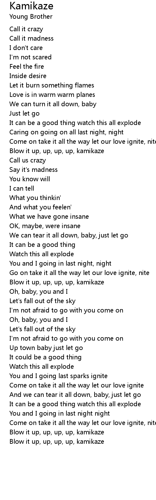 Blow it up, up, up, up, kamikaze |