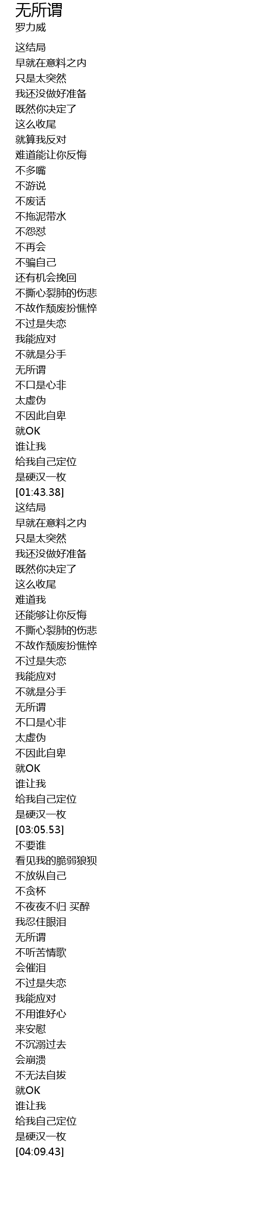 | [03:32.29] | 无所谓 |