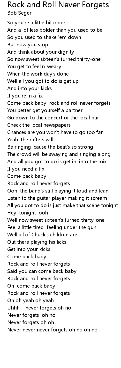 Come back baby rock and roll never forgets |