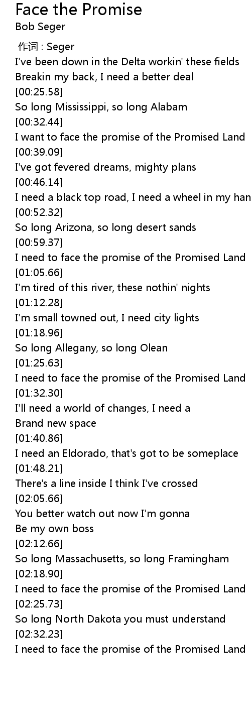 | [00:33.50] | I want to face the promise of the Promised Land |