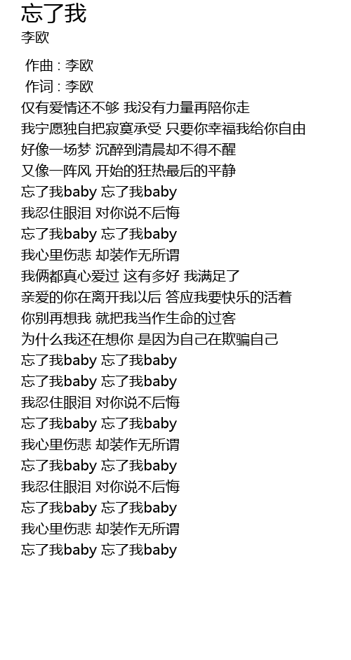 | [03:12.690] | 忘了我baby 忘了我baby |