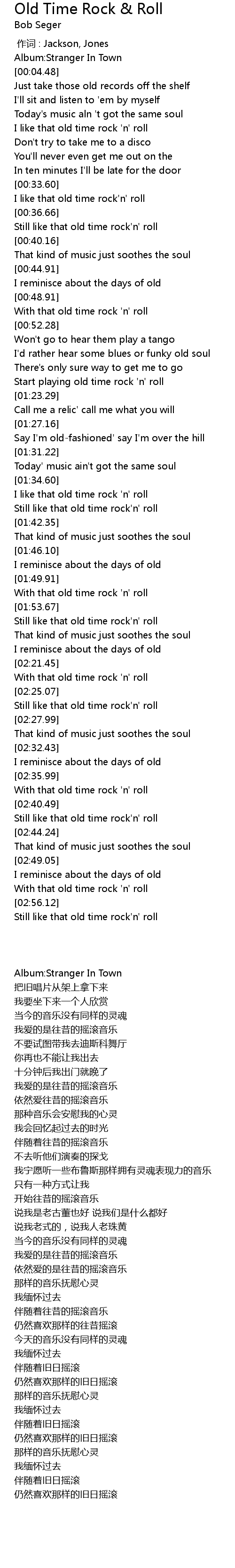 | [01:20.41] | Start playing old time rock ' n' roll |