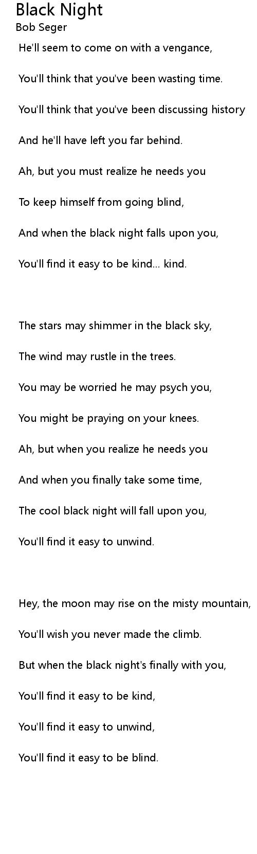 But when the black night's finally with you, |