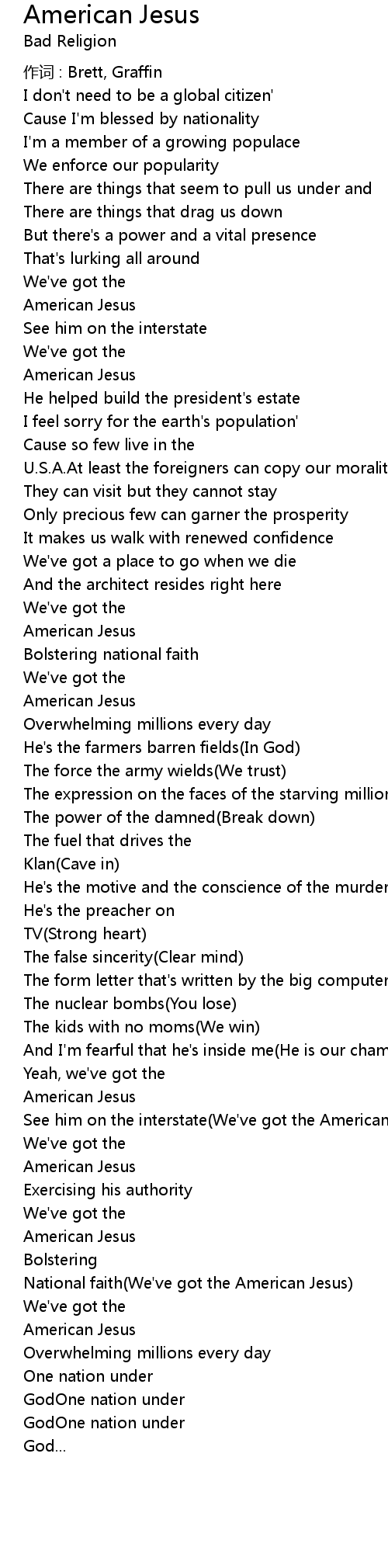 | National faith(We've got the American Jesus) | |