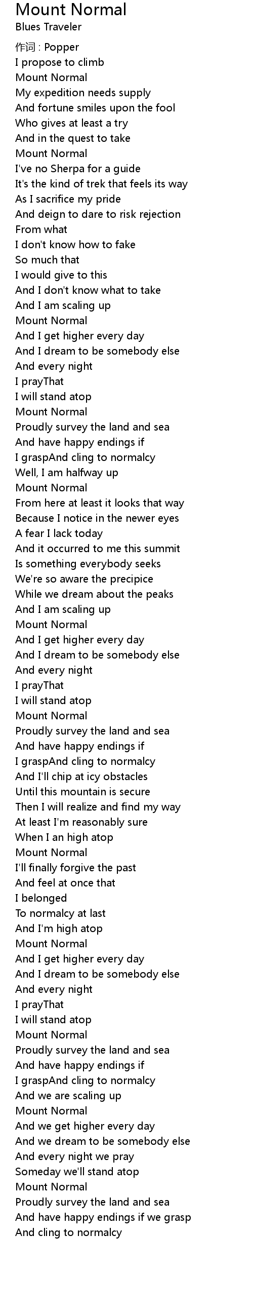 | Song | Mount Normal |