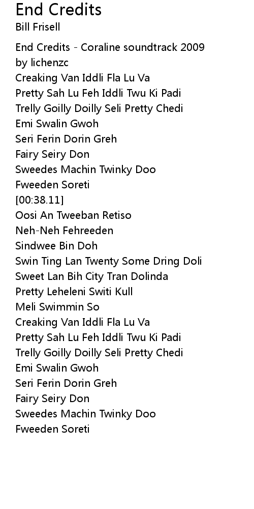 [00:01.67] End Credits - Coraline soundtrack 2009