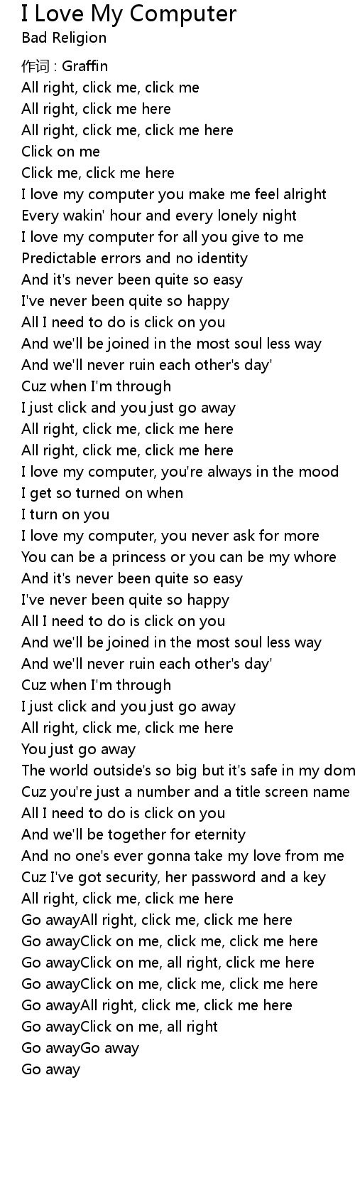 | I love my computer you make me feel alright | |