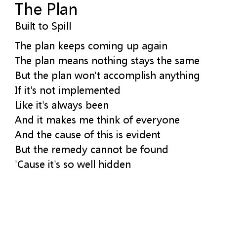 | [00:10.60] | The plan means nothing stays the same |
