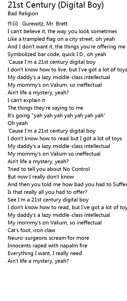 | ' Cause I' m a 21st century digital boy | |