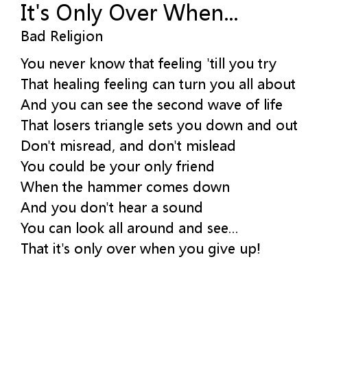 | Song | It's Only Over When... |