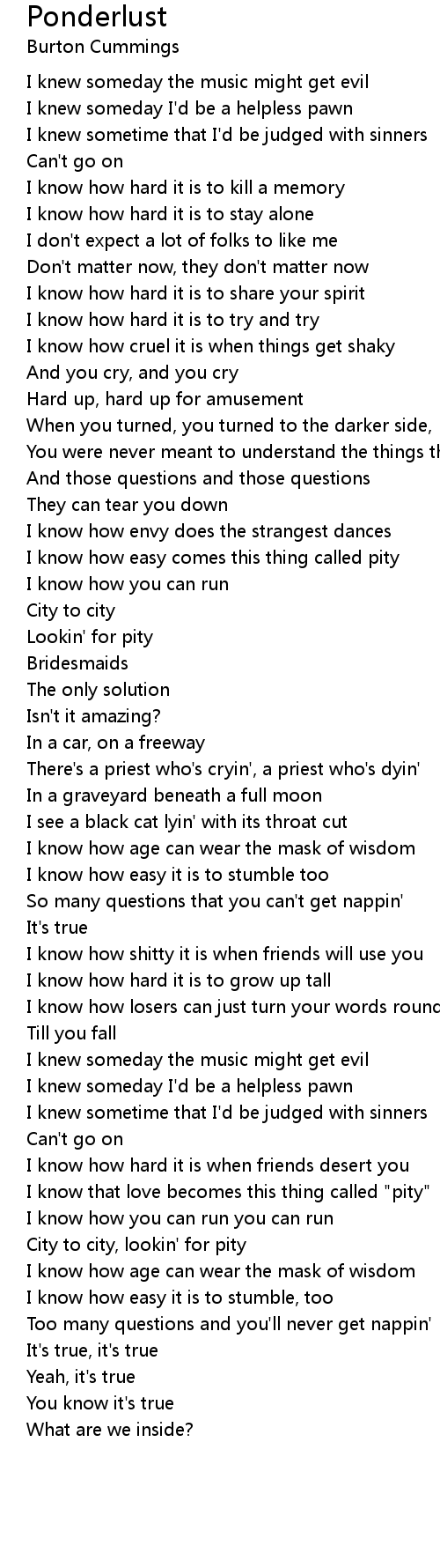 I know that love becomes this thing called "pity" |