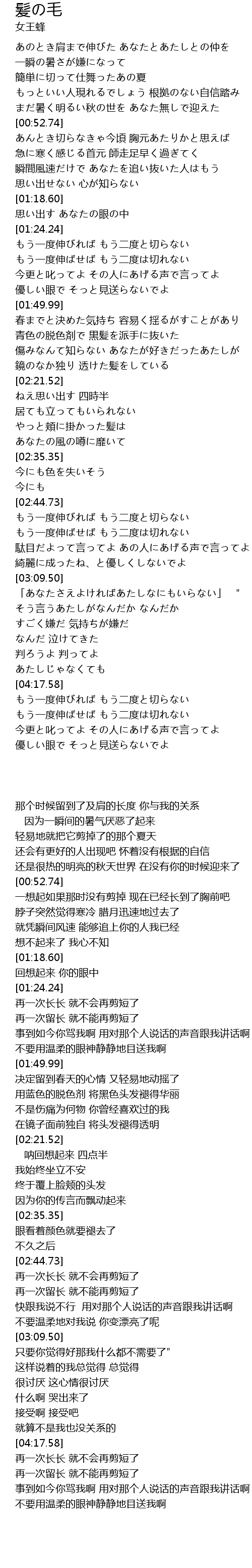 | [04:23.84] | もう一度伸ばせば もう二度は切れない |
