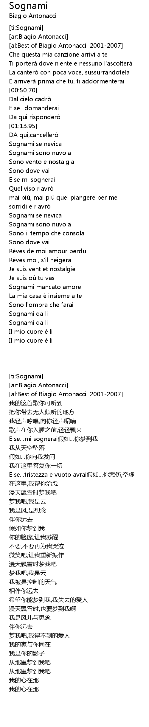 | [00:35.50] | E arrivera prima che tu, ti addormenterai |