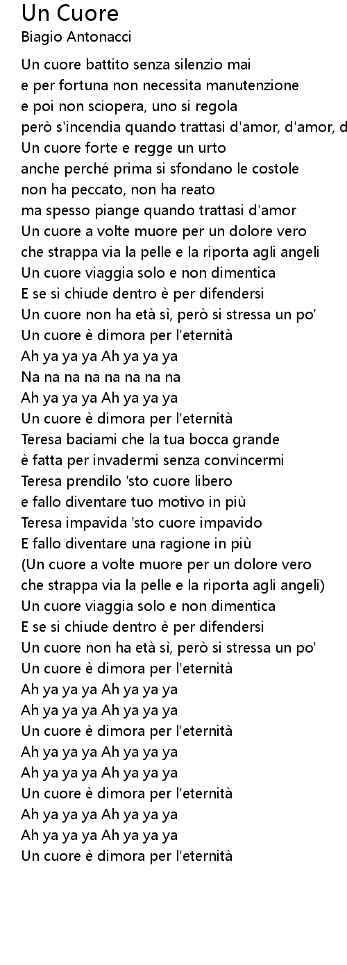 | Un cuore battito senza silenzio mai | |