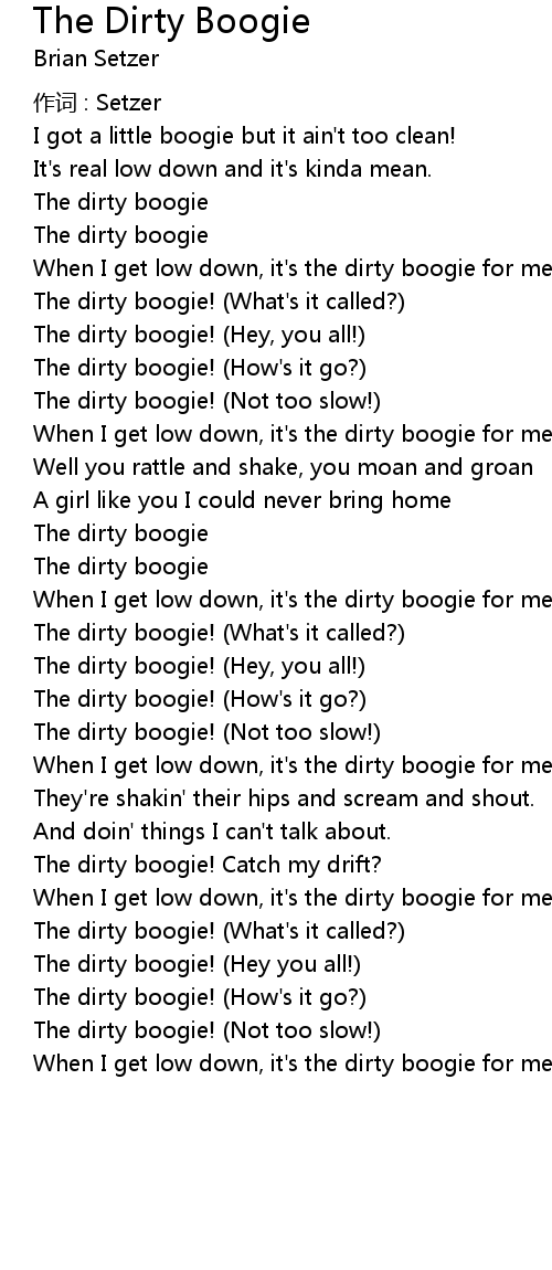 | I got a little boogie but it ain' t too clean! | |