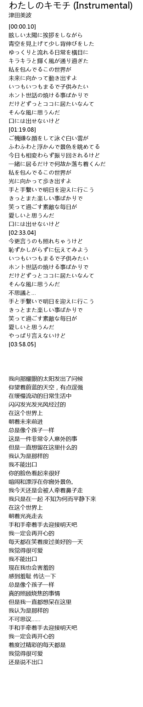 | [03:06.83] | 恥ずかしがらずに伝えてみよう |