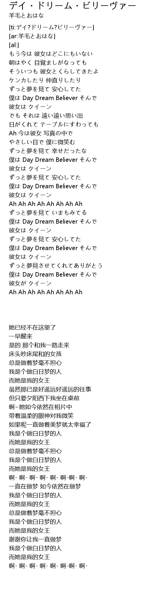 | [02:46.19] | 僕は Day Dream Believer そんで |