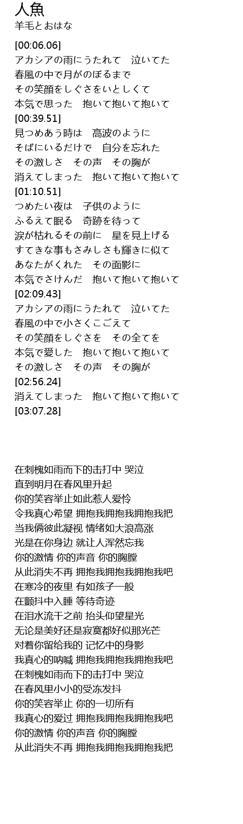 | [02:58.43] | 消えてしまった 抱いて抱いて抱いて |