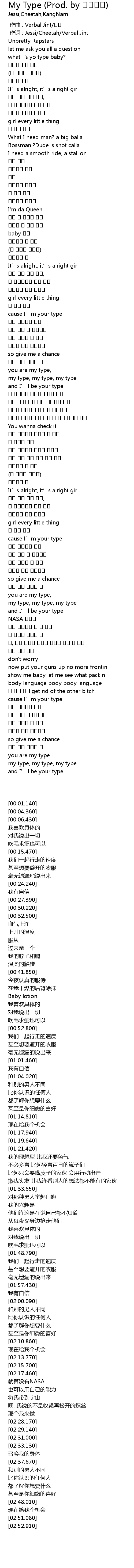 | [00:00.380] | 作词 : Jessi/Cheetah/Verbal Jint |