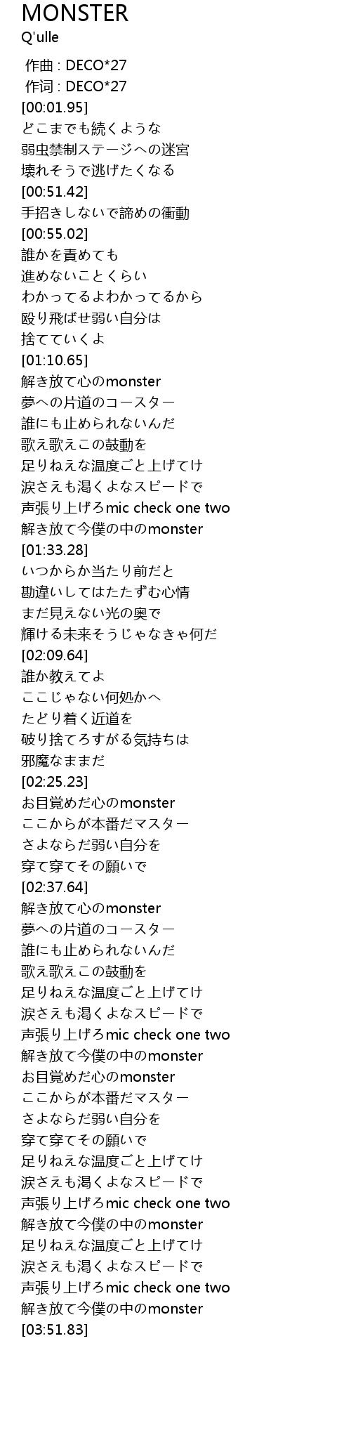 | [03:48.33] | 解き放て今僕の中のmonster |