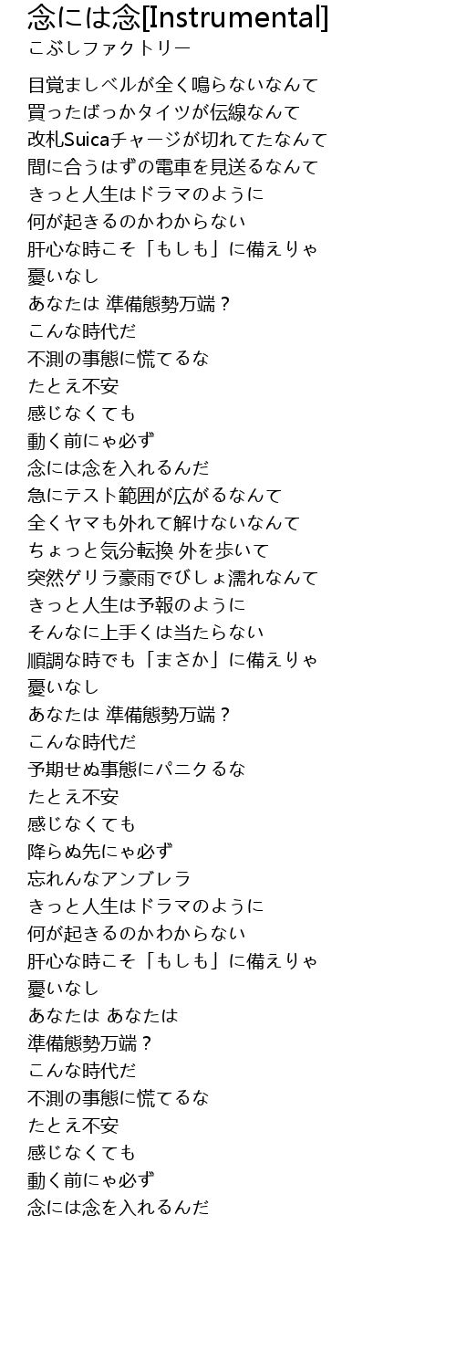 | Song | 念には念[Instrumental] |